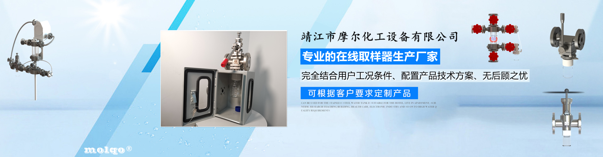 靖江市摩爾化工設備有限公司位于蘇中明珠——江蘇省靖江市城南工業園區東進路北側天元艾爾瑞內,另有生產基地位于靖江市經濟技術開發區新號路1號鼎電科技園內。我公司由數名長期從事化工生產、氟塑襯里模具開發以及機械自控設備的專業人員共同合作成立,致力于提供客戶最優的高效在線取樣、反應及精餾分離設備,為客戶提供合理的設備選型方案,以幫助客戶提高綜合生產效率以及改善生產現場環境為目標。 本公司主要制造及銷售的產品有:釜用在線取樣裝置,管道取樣閥,釜用清洗噴淋裝置、搪玻璃設備、GMP專用搪玻璃設備、氟塑襯里設備、攪拌器、釜用機械密封、氣動閥門及搪玻璃管道、襯氟閥門管道、非標不銹鋼容器,精餾塔塔器、片式冷凝器及PTFE密封件、鋯、鈦、鉭、鎳等加工件制品。我司是一家集研發銷售、設計咨詢服務于一體的專業···| 玉林市 | 灵宝市 | 柘城县 | 东乌 | 嵊泗县 | 浦城县 |